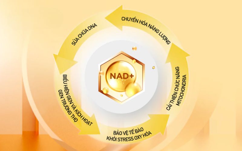 NAD⁺ không chỉ cung cấp năng lượng cho tế bào, mà còn kích hoạt các nhóm enzyme sirtuin – vốn có vai trò trong sửa chữa DNA, hỗ trợ tế bào chống lại các tác nhân oxy hóa và kéo dài vòng đời tế bào. Nhờ đó, NMN gián tiếp hỗ trợ tăng cường sức đề kháng và làm chậm các dấu hiệu lão hóa.